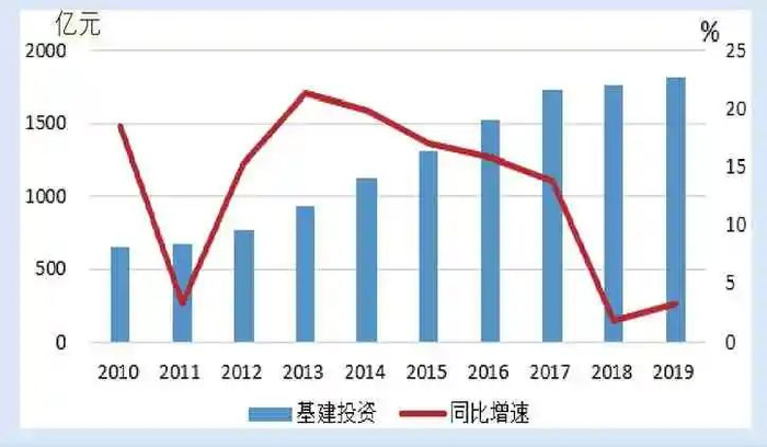 一是资本形成压力大,基建投资增速持续放缓。经济新常态以来,中国人口红利逐步消退,企业全要素生产率有所走低,财政收支用于基础设施和公共服务的资金压力增大。2010―2020年,全国公共财政收支预算缺口由10600亿元增至67580亿元。作为城镇化基础设施和公共服务的重要资金渠道,政府性基金亦面临收支压力。2010―2020年,全国政府性基金收支预算缺口由655.7亿元增至44677.5亿元。据陈道富和朱鸿鸣(2014)、成林涛(2014)等测算,在对冲基础设施建设和转移人口城镇化等资金需求、财政金融和国有资本经营性收益等资金供给之后,中国“十三五”期间新型城镇化建设的投融资缺口约为6~7万亿元。近年来,中国城镇化资本形成水平逐年下降,新增基础设施固定资产投资增速持续放缓(见图1),2013―2019年由22%降至3%。受新冠疫情影响,2020年2―6月我国基建投资同比增速分别为-26.9%、-16.4%、-8.8%、-3.3%和-0.1%,投融资两端压力空前。