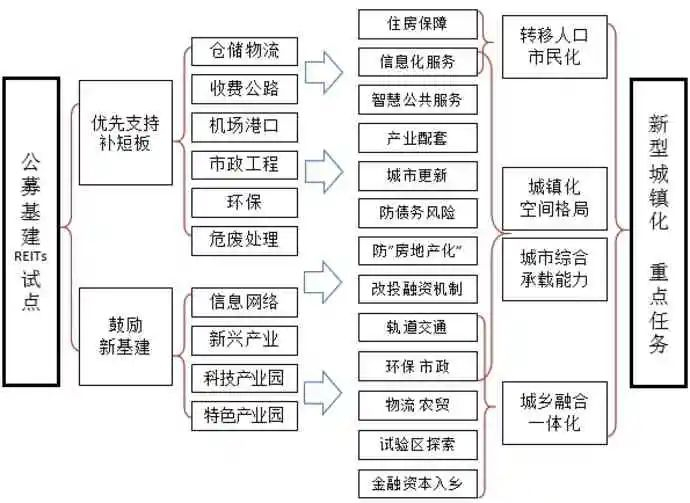 资料来源:参考《关于推进基础设施领域不动产投资信托基金(REITs)试点相关工作的通知》和《2020年新型城镇化建设和城乡融合发展重点任务》自行绘制。