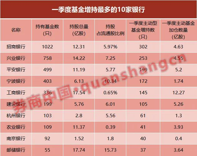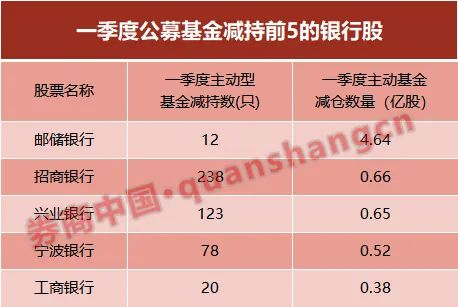 另一方面,部分基金对国有大行有明显减仓动作,如邮储银行一季度分别遭易方达、南方基金、招商基金各自旗下的1只基金分别减持超过1亿股,3只基金合计减持邮储银行约4.56亿股。同时,农行、建行、工行等个股也遭其他基金减仓。