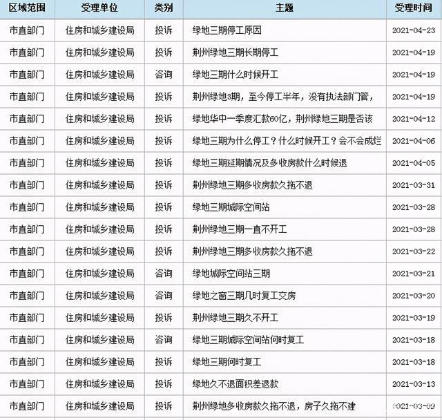 关于荆州绿地三期停工后投诉