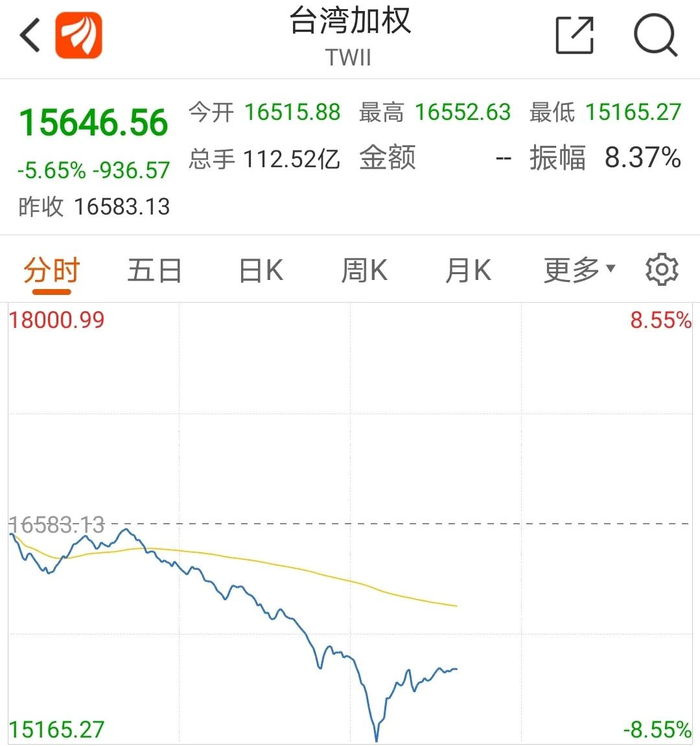 突然崩盘:台湾股市暴跌逾1300点 发生了什么?