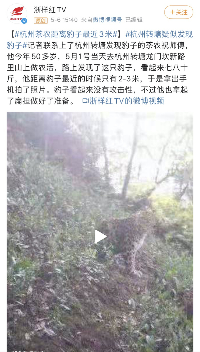 “我也是到5月6号才在网上看到豹子出逃的新闻,在此之前完全没有听说,包括五一期间,杭野也是熙熙攘攘的人。但现在回想起来,4月底,我们小区附近的确发生了一些奇怪的事情。”