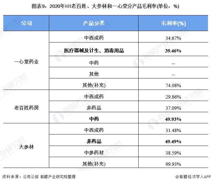 大参林毛利率最高的产品是非药品类产品,其毛利率为49.49%,较中西成药产品毛利率高18%。