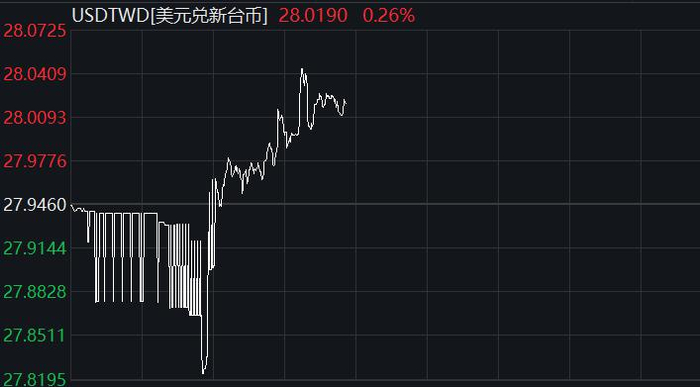 台币兑美元也一度跌至28.04,创逾两周盘中低点。