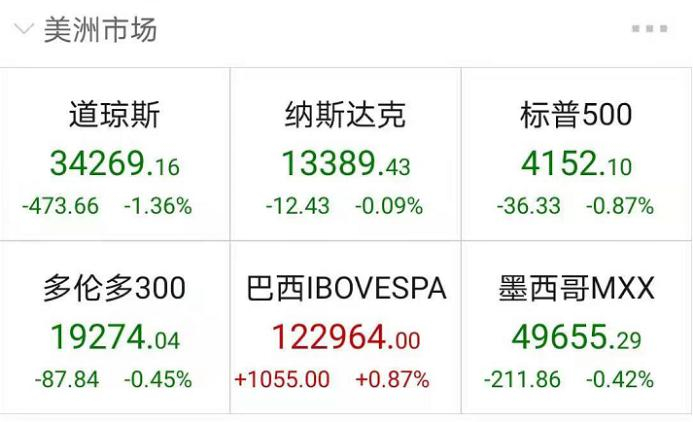 美洲市场方面,道琼斯指数跌1.36%,加拿大的多伦多300指数跌0.45%,墨西哥股市跌0.42%。