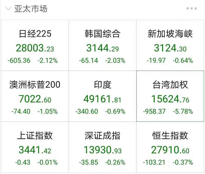 除了台湾股市,亚太股市早盘表现也不佳。截至目前,日经225、韩国综合指数跌逾2%。