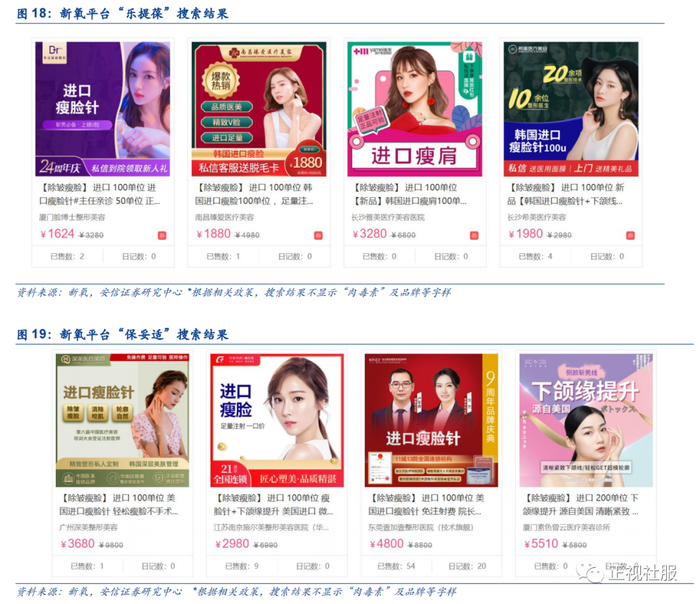 韩国同类产品中首款国内上市,已在国内具有知名度。根据中国整形美容协会提供的数据,国内市场上销售的玻尿酸和肉毒素类产品70%由假货和水货构成,实际年消耗量是正规产品的5倍左右。根据肉毒素在线数据,肉毒素“黑市”中,韩国进口的“粉毒”、“白毒”和“绿毒”占据最大市场份额,其中“白毒”即为乐提葆在水货市场中的代称,其产品在水货市场上已有较高认知。过去消费者和医美机构选择水货产品主要是由于行货市场可选择产品较少,仅有保妥适和衡力两款,而韩国肉毒素其产品力与保妥适相近,价格又具有明显优势。作为首款韩国同类产品中在华上市的肉毒素产品,乐提葆不仅在现有行货市场上具有高性价比的竞争力,在水货市场中也能将部分过去偏好韩国肉毒素却苦于没有正规国内引进产品的消费者纳入麾下。