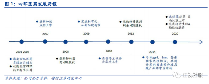 2006年4月,四环医药控股集团在Bermuda注册成立,并于2007年3月在新加坡成功上市。2009年,为适应更大发展的需要,四环医药控股集团完成私有化,从新加坡退市,并于2010年在香港主板再次成功上市。