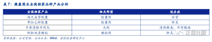 ■ 现代中药布局:澳康药业164个批准文号的生产品种,其中包括128个国家医保品种,以及海天益肾胶囊、牛黄清脑开窍丸、草仙乙肝胶囊、肝胆双清颗粒等四个全国独家品种。