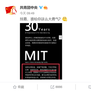 5月11日,共青团中央在微博发声追问:“技嘉,谁给你这么大勇气?”