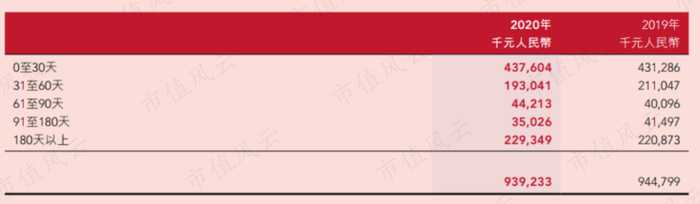 2019年末和2020年末,超70%的应收账款账龄在90天以内,较为健康。