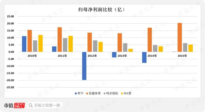 李宁、特步国际和361度均在2014年至2015年恢复增长,但与同行相比,李宁的增速没有突出表现。