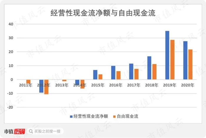 经营性现金流净额在2015年才恢复净流入,随后增长至2019年的高点35.03亿,2020年回落至27.63亿。