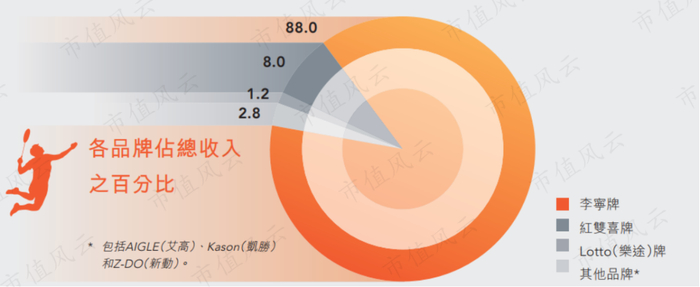 直至2012年,李宁牌始终是最主要收入来源,当年收入为59.26亿,占营收比例达88%,红双喜为5.42亿,占比仅8%,乐途以及其他品牌合计仅4%。