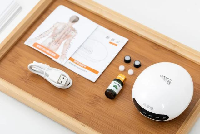 这个智能刮痧仪外观小巧精致,一只手就能握住,平时出差也能随身携带。