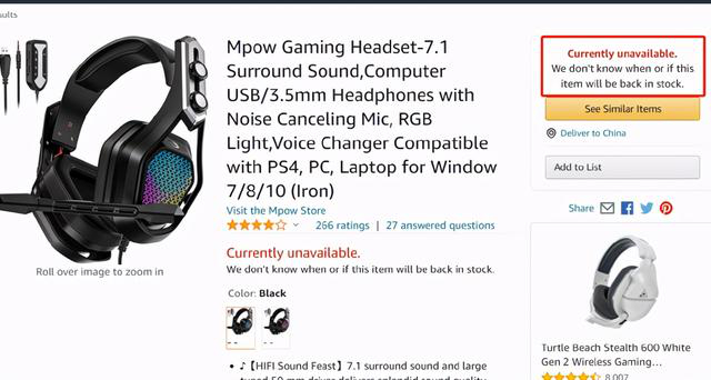 通过亚马逊首页搜索Mpow的listing,其详情结果也显示“unavailable”。