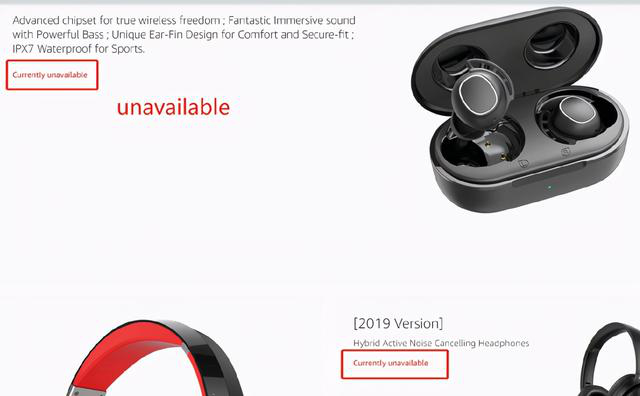 点开其中产品后,都显示“unavailbale”的不可售状态。
