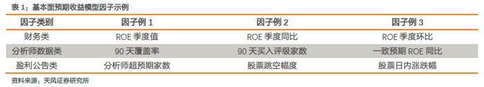 该模型由三部分组成,分别为盈利因子模型、分析师预测因子模型和业绩事件模型,模型构建方法请参见天风金工发布的报告《利用公司公告时的市场反应构建股票收益预测模型》。下表列举了模型中所使用的主要因子: