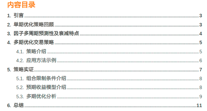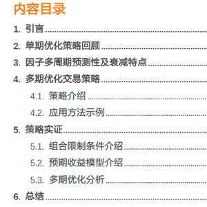 报告从因子的多期预测性出发,通过多期优化的方法,构建了能够自适应的、在快慢因子之间进行调节的组合交易策略。经过实证发现,该策略能搞起到既定作用。同时该方法有较强的拓展性,有进一步研究探索的潜力。