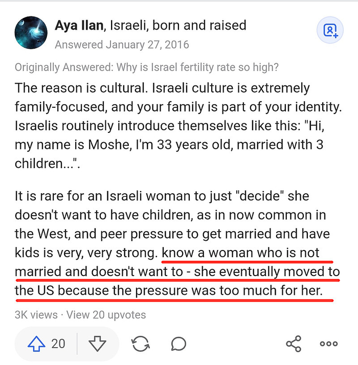国外某论坛的回答:一个未婚的以色列妇女不想结婚,迫于压力只能移民到美国