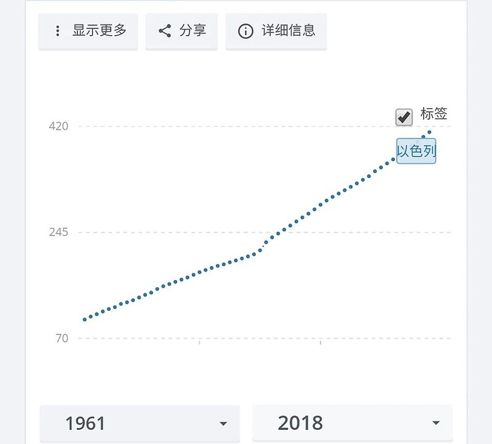 1961至2018年以色列人口密度增长情况
