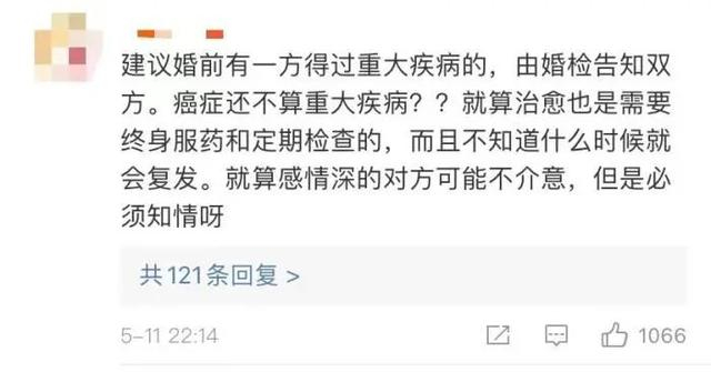 但从网友的评论可以看出,还有不少人表示,甲状腺癌影响虽小,但除了疾病本身,隐瞒病史这一行为更不能容忍。