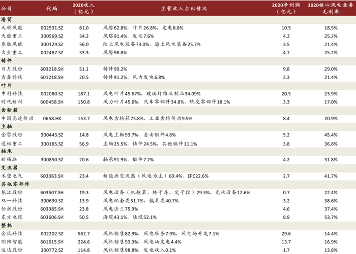 图表: 主要上市风电制造企业收入、利润、毛利率情况(2020年)