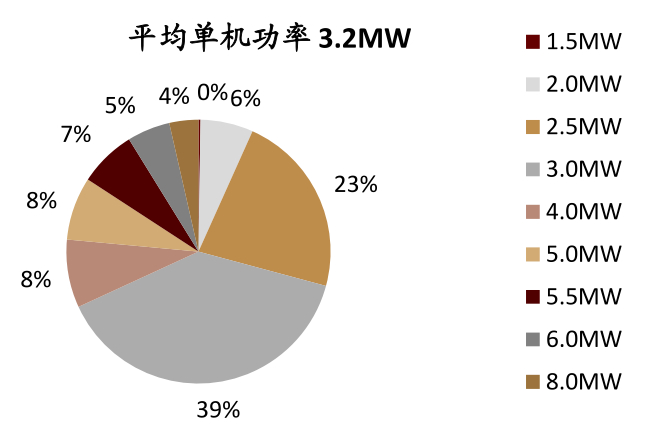 平价时代机组大型化趋势加速。根据中国风能协会数据,中国风电历年新增项目平均单机功率分别在2011和2017年突破1.5MW和2.0MW,历时6年平均功率提升仅0.5MW。而随着陆上、海上风电有国家补贴项目分别于2020、2021年末并网截止,风电逐步迈入平价时代,行业多年的机组研发积累也得以显现。根据国际能源网统计,2020年央企风电机组招标的约23GW项目中,平均单机功率已经达到3.2MW,其中3.0MW及以上功率机型占比已经超过70%,大型化趋势明显加速。