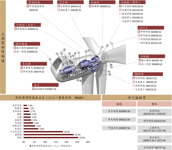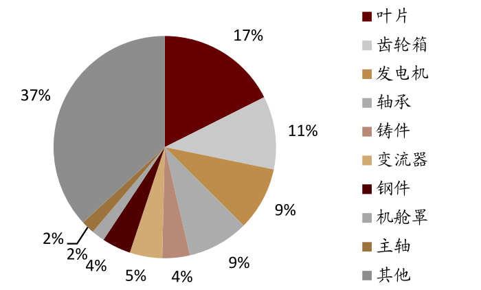 图表: 上海电气风电风机零部件成本占比(1H20)