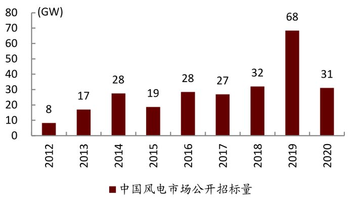 受陆上风电抢装影响,2020年是中国风电行业发展的大年,有别于市场目前认为的光伏快速发展会快速挤压风电的新增量等原因进而认为风电需求将回落,我们认为行业抢装后十四五期间中国风电新增需求有望持续景气。同时我们认为,机组大型化加速的趋势下,有望重塑风电制造环节的行业格局,把握这一趋势的公司有望取得领先地位。