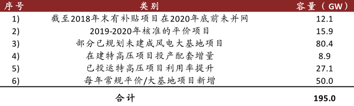 陆上风电:我们将十四五期间陆上风电项目分为以下六类,我们预计将有195GW以上的陆上风电项目新增(对应年均39GW以上)