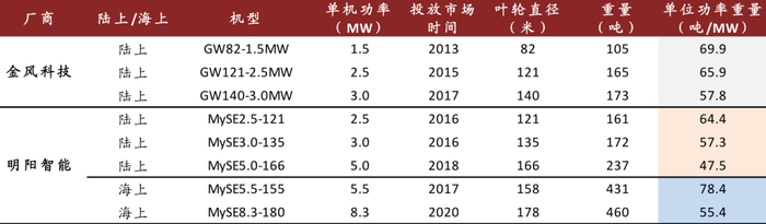 资料来源:金风科技官网,明阳智能官网,中金公司研究部
