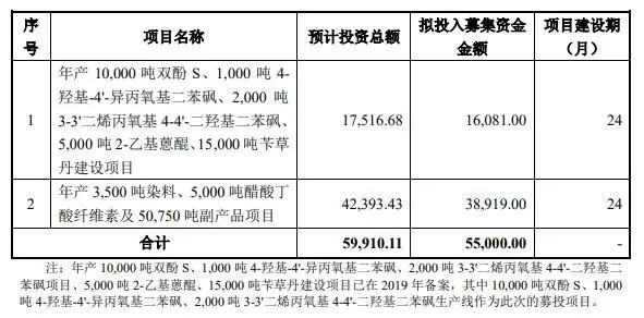 其中此次建设项目1的新增产能均属于化工新材料类别;而建设项目2将新增3,500吨染料及55,750吨其他产品产能。