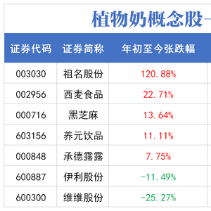 川财证券表示,燕麦奶在我国发展迅速,但仍然面临诸多考验。燕麦奶市场格局仍在不断变化之中,产品、品牌、商业模式处在持续打磨期,消费者对品类的认知仍需培养。因此建议关注在品牌建设、新品开发、营销具备较大优势以及商业模式较为成熟的头部企业。