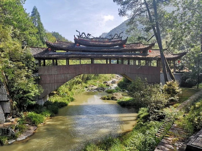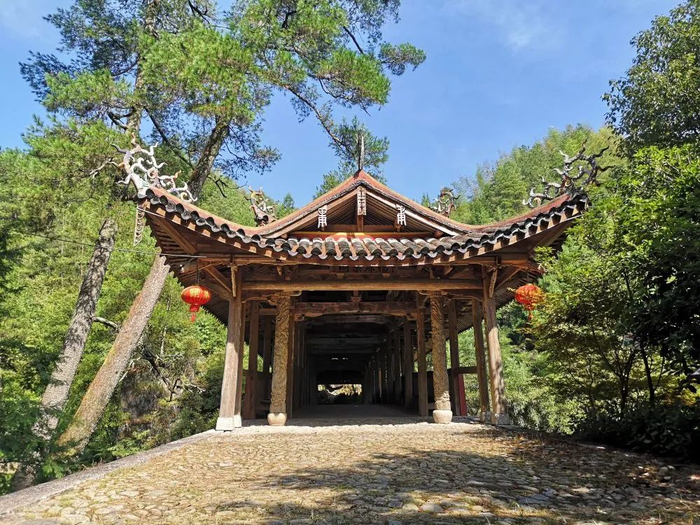 微醺,来到一座廊桥前。此桥名为同乐廊桥,在岭北村尾村村口、天关山千年古道的“钥匙头”处。听当地的村民讲,廊桥一般建在溪水的拐角处,有留住好运之意。