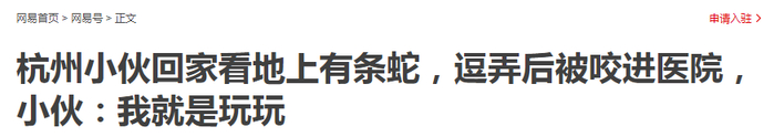 杭州曾有一小伙回到家,发现地上有条一动不动的蛇,他以为蛇在冬眠,随即玩心大起,走过去踩住蛇尾,用手拨弄蛇头,不料蛇突然立了起来,直接朝着小伙的手指就是一口,小伙赶紧来到医院打血清,医生说这是蝮蛇咬的,好在就医及时,不然后果不堪设想。