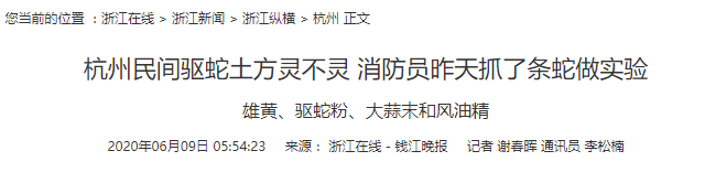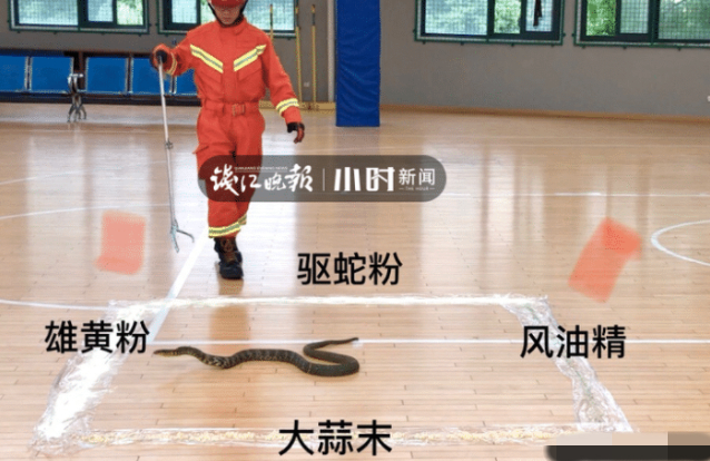 经过实验,消防员们得到的结论是,雄黄粉和驱蛇粉能对蛇起到一定“震慑”作用,但蛇也只是稍作迟疑,而大蒜末和风油精对蛇几乎不起作用。