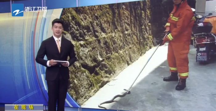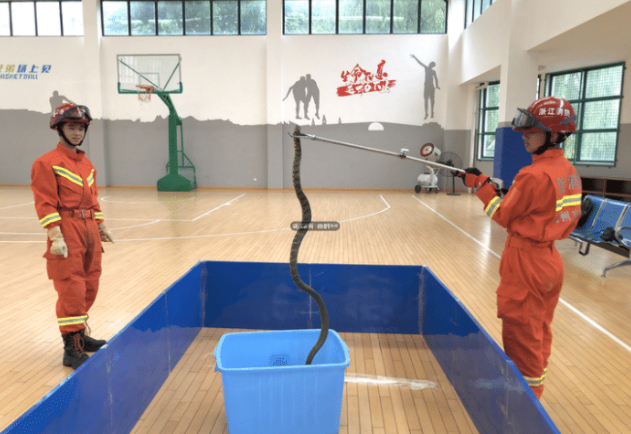 在杭州,消防员的工作可能没有死角,因为蛇可以出没在任何地方。