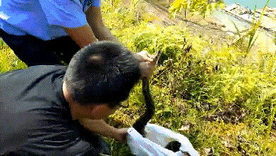 “只要用木棍按住蛇的头部位置,用手抓蛇头位置就可以了。”一位执法人员轻描淡写地比划着自己的捕蛇经验。