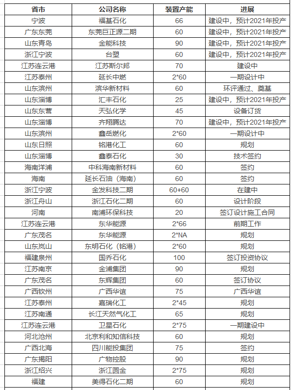 我们对PDH新建项目的进行了初步统计,诸多项目的规划和建设彰显了业内企业对PDH行业未来发展的信心。