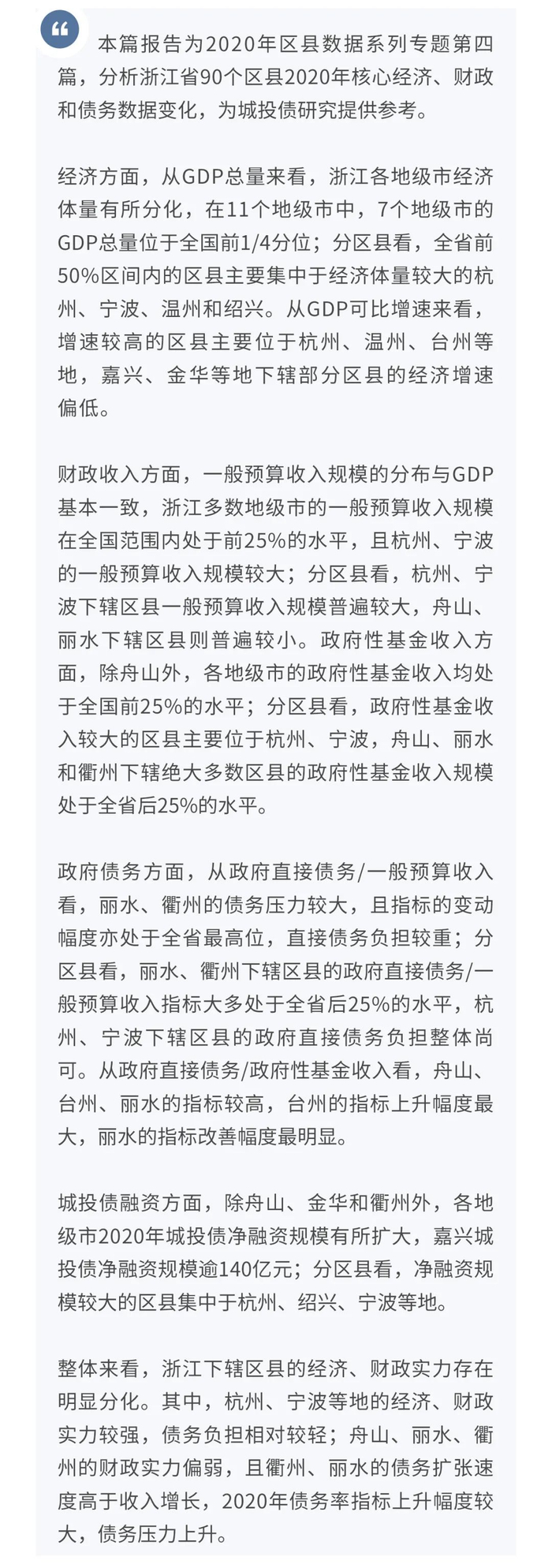 原标题:【今日推荐】2020年区县数据专题——浙江篇 来源:兴业研究