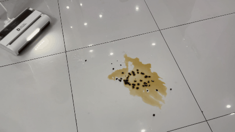 同样是酱油,传统洗地机(还是价格3000+的一款),残留痕迹明显。