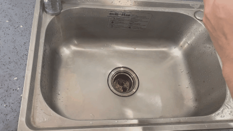 而它是干湿垃圾分开储存,干垃圾倒垃圾桶,污水倒水池里,方便~
