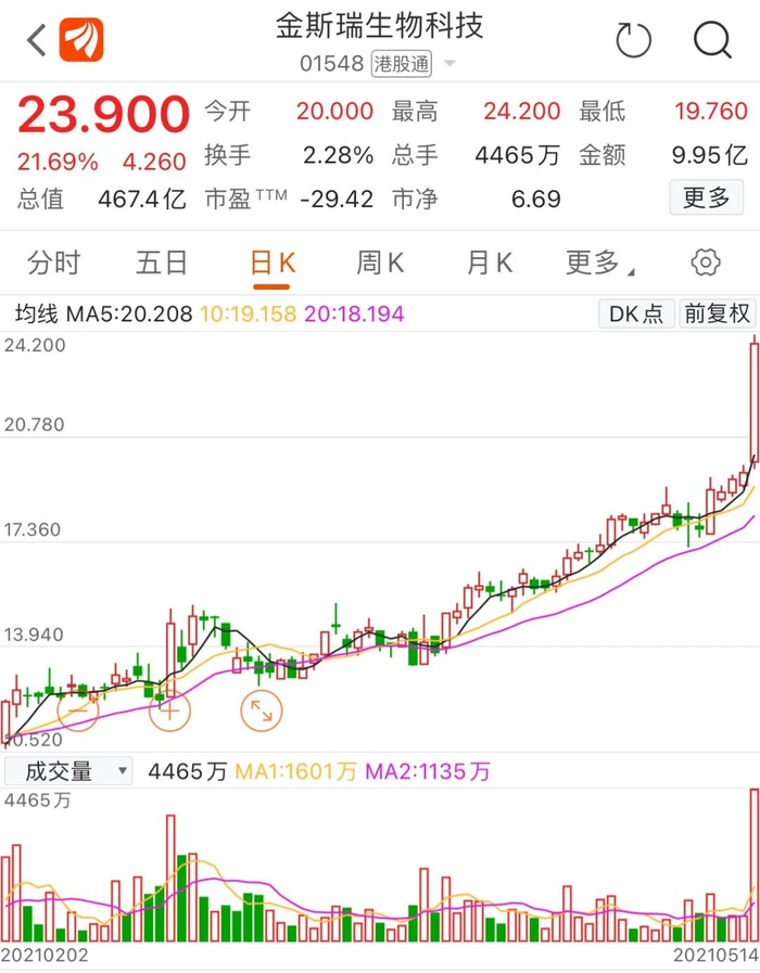 这一重磅交易出炉后,金斯瑞生物科技午后开盘飙涨,收盘大涨21.69%,市值超过460亿港元。