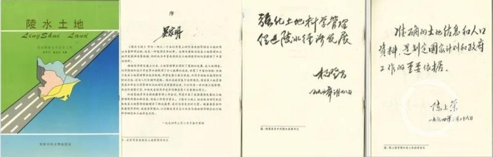 1994年由成都科技大学出版社出版的《陵水土地》一书,由时任海南省土地管理局局长吴家明作序,陵水县委书记杨登昌、县长陈上荣题字。/受访者供图