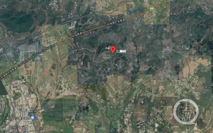 三脚岭介于大石村与万安村之间,村民称其为“赖以为生”的土地。/地图软件截图