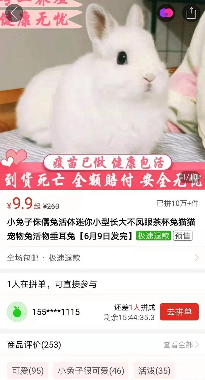 近日,记者在线上平台看到,售卖宠物类活体动物的商家很多,商品种类主要是鹦鹉、小兔子、乌龟等小型宠物,价格从十几元到几百元不等。有些在商品页标注“已打疫苗”,有些并没有备注,并且大部分小宠物都包邮,比如一只鹦鹉十几元就可以包邮。记者还注意到,这些宠物的线上销售情况非常火爆,某电商平台上月销10万件以上的宠物有很多。