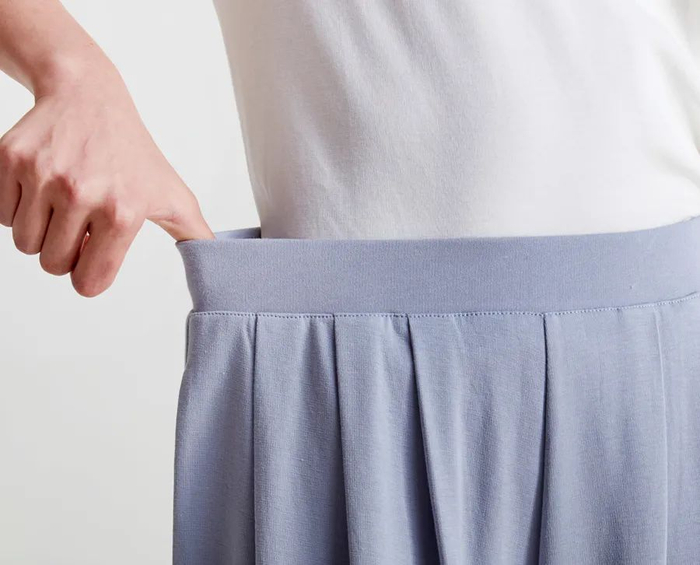 精心的褶皱设计,从腰头垂坠而下,走起路来比较飘逸。