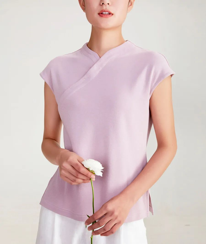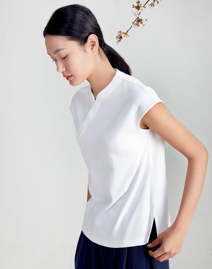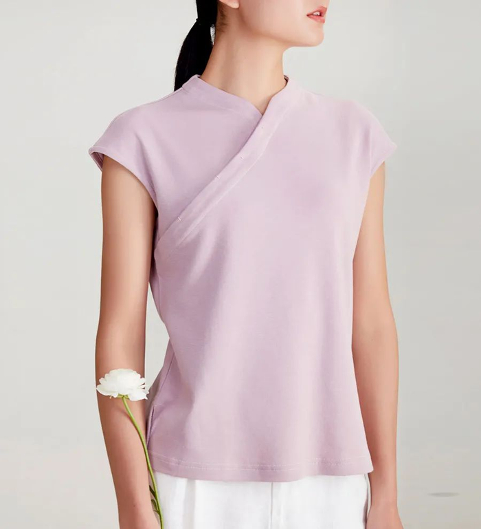 这款女士上衣,参考了中式旗袍的元素。