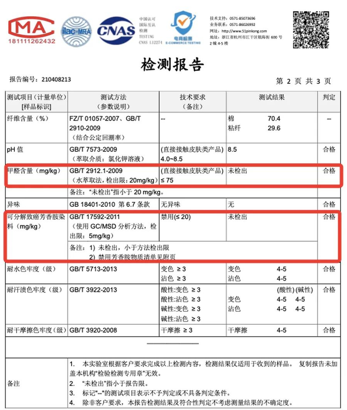 经过第三方机构的检测,中偌的罗布麻系列服装,甲醛和可分解致癌芳香胺染料的检测都符合国家标准,可以放心贴身穿着。